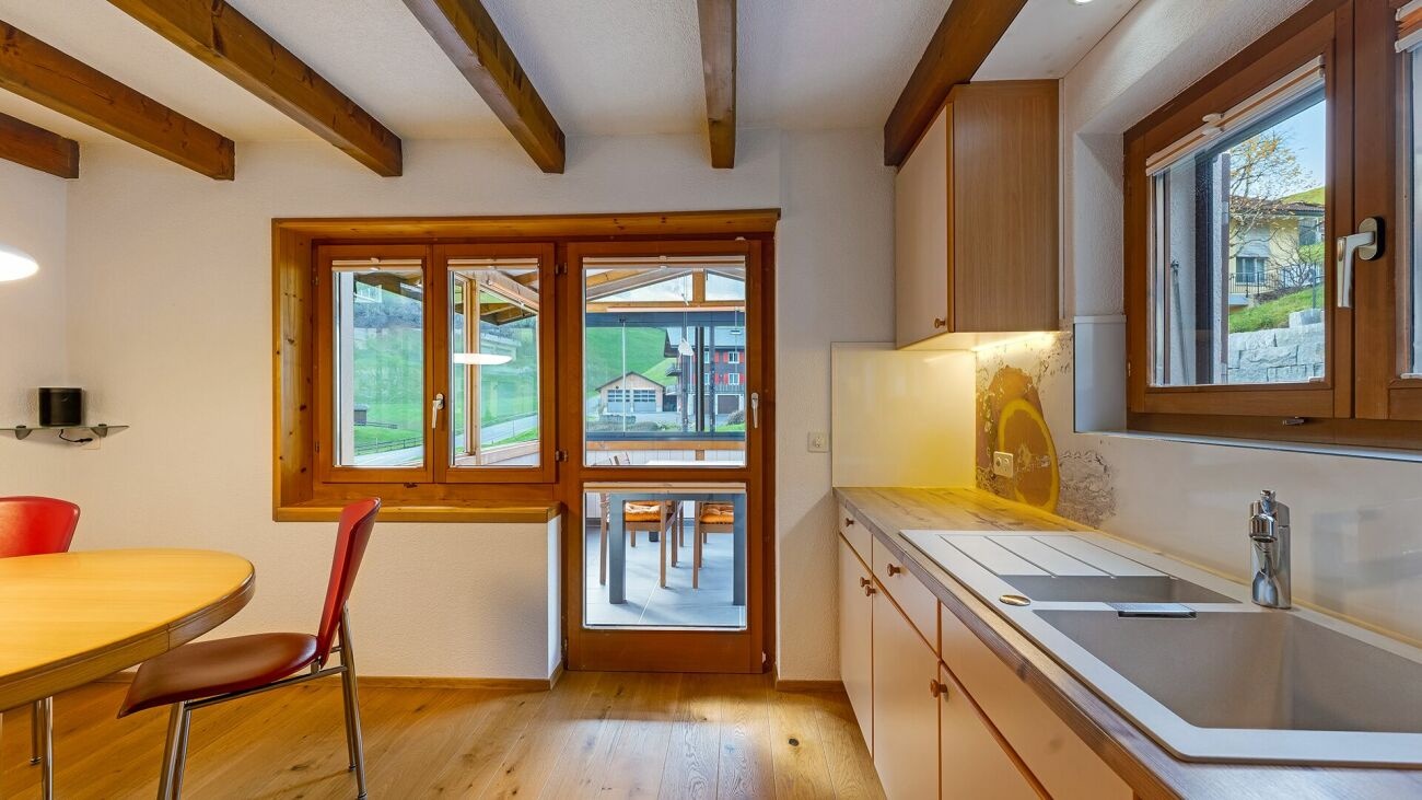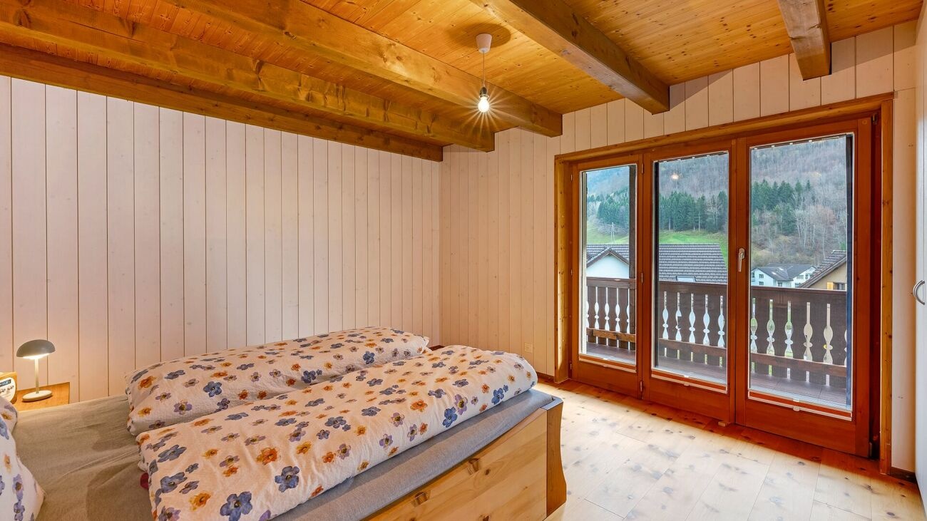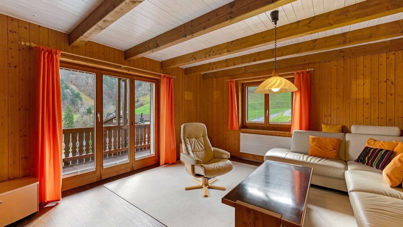 Dieses freistehende Zweifamilienhaus mit Baujahr 1989 liegt am ruhigen Dorfrand in einem gepflegten Einfamilienhaus-Quartier. Die kinderfreundliche Umgebung bietet kurze Wege zu Schule und Dorfzentrum, während die südöstliche Ausrichtung den Wohnräumen, Sitzplätzen und Balkonen angenehme Sonnenstunden schenkt. So verbindet die Lage gute Erreichbarkeit mit naturnaher Ruhe. Die Wohnfläche von ca. 232 m² verteilt sich auf zwei Wohneinheiten: die grosszügige Hauptwohnung im Erd- und Dachgeschoss sowie eine Einliegerwohnung im Untergeschoss mit separatem Eingang. Der gepflegte Innenausbau ist geprägt von viel Holz und strahlt eine warme, einladende Atmosphäre aus. Küche oder Bad können bei Bedarf modernisiert werden.